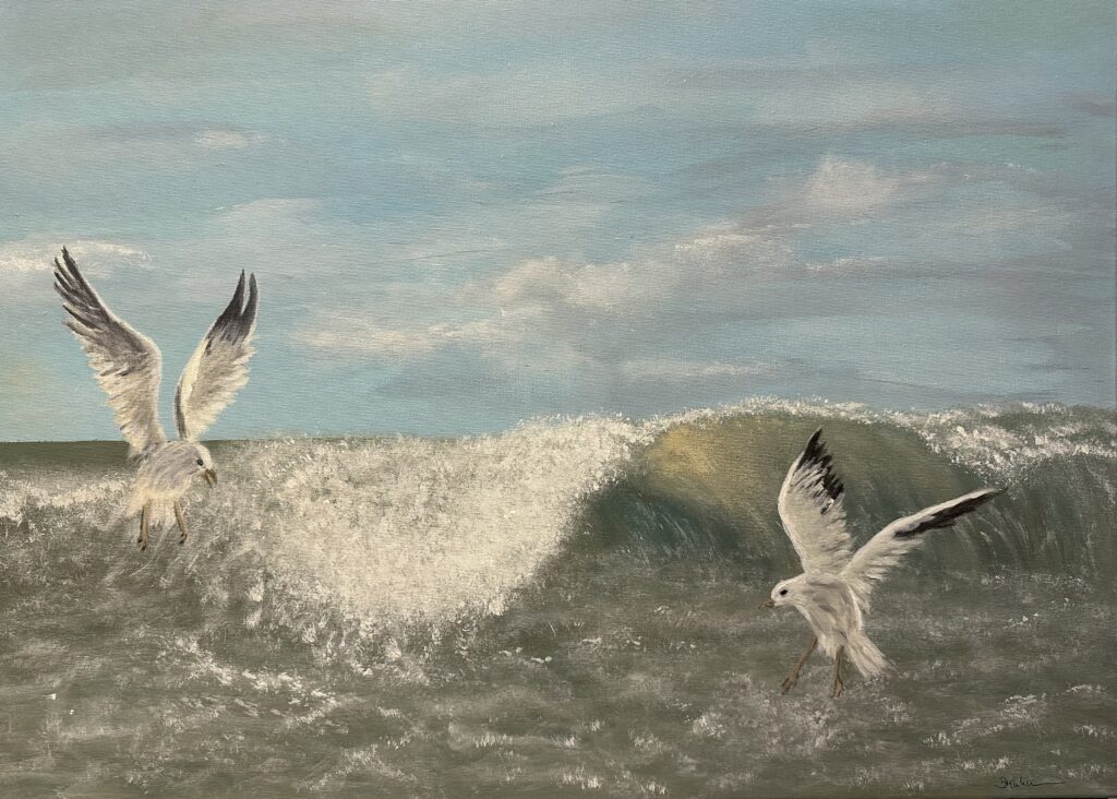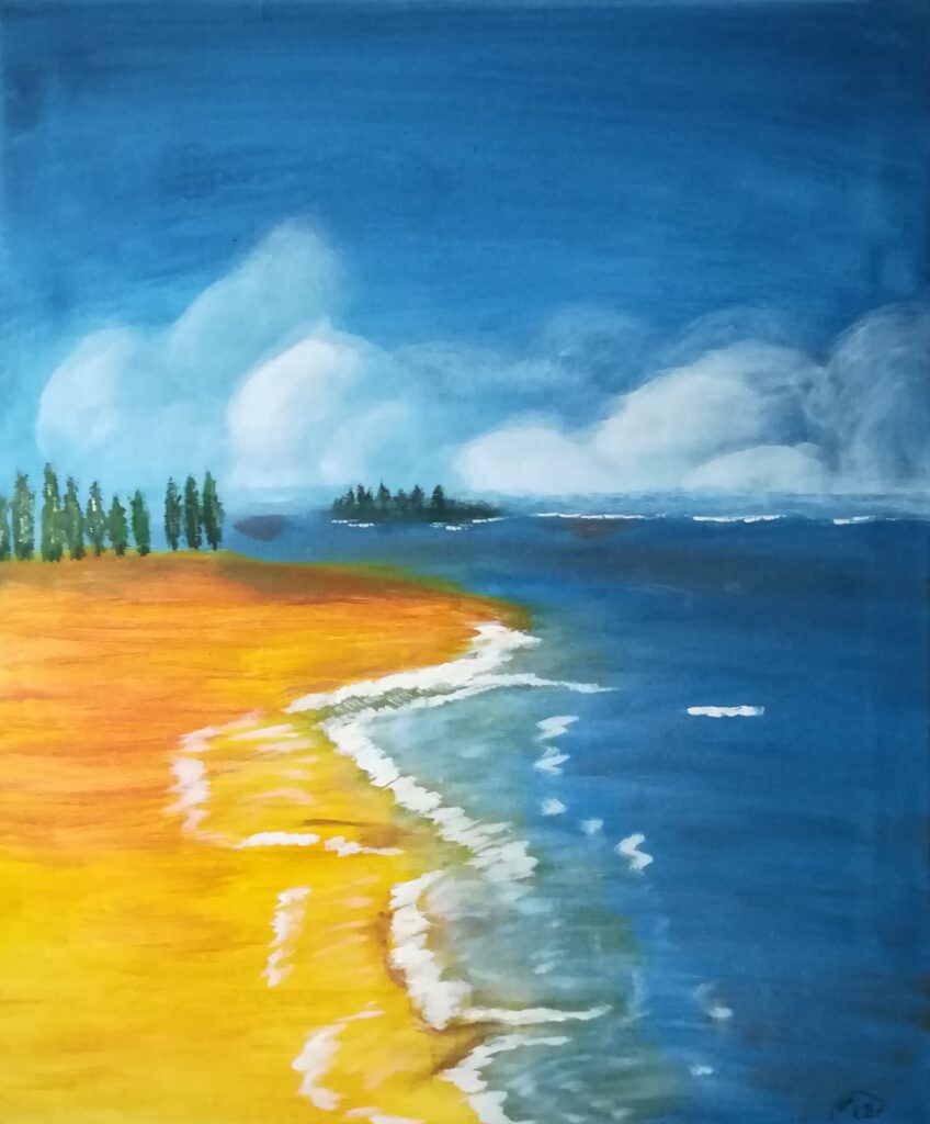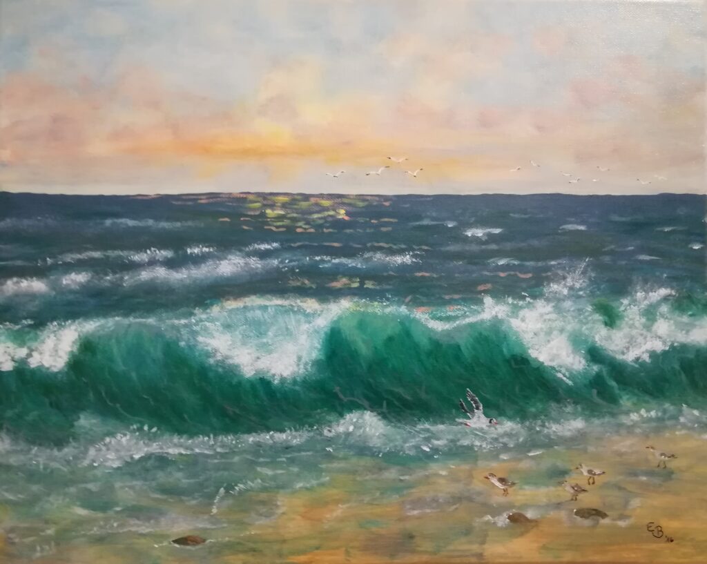 Ich bin Elke Brinkmann, eine leidenschaftliche Malerin, die sich von ihrer Liebe zum Meer und der Natur inspirieren lässt und diese auf ihren Bildern festhält.